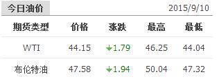 2015年9月10日國際原油價格表